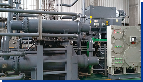 【離心工藝壓縮機】流量范圍:1200~600000Nm3/h,壓力范圍:0.25~40.0 MPa(G),壓縮介質:各種工藝氣體;